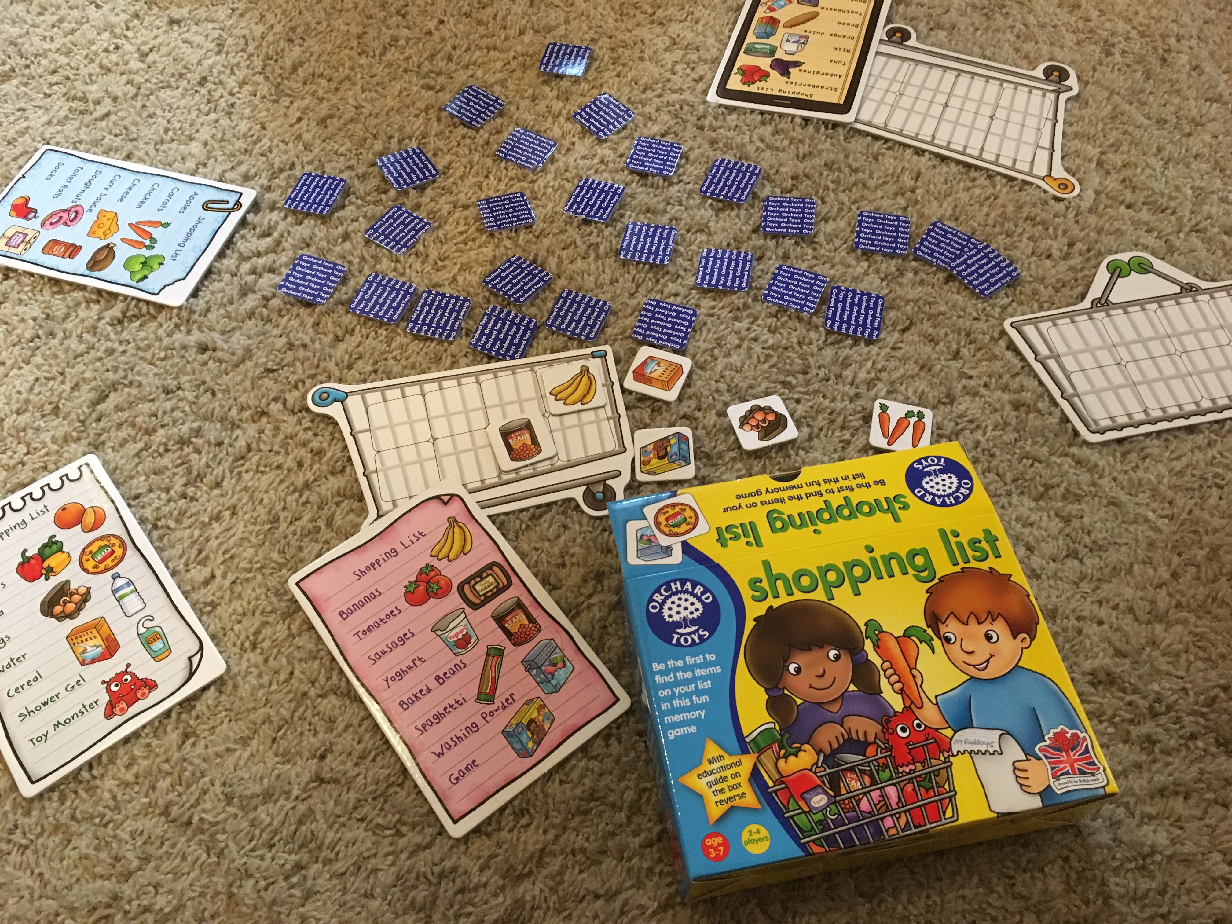 Colin just got this fun little game for his third birthday. Shopping List by Orchard Toys, found on Amazon. Players take turns choosing a face down card, if it matches their shopping list they get to put it in their cart. If not, it gets returned face down for another player to find (similar to Memory). Colin is so excited when he finds a food on his list, its hilarious! “Yay! Carrots!!!”