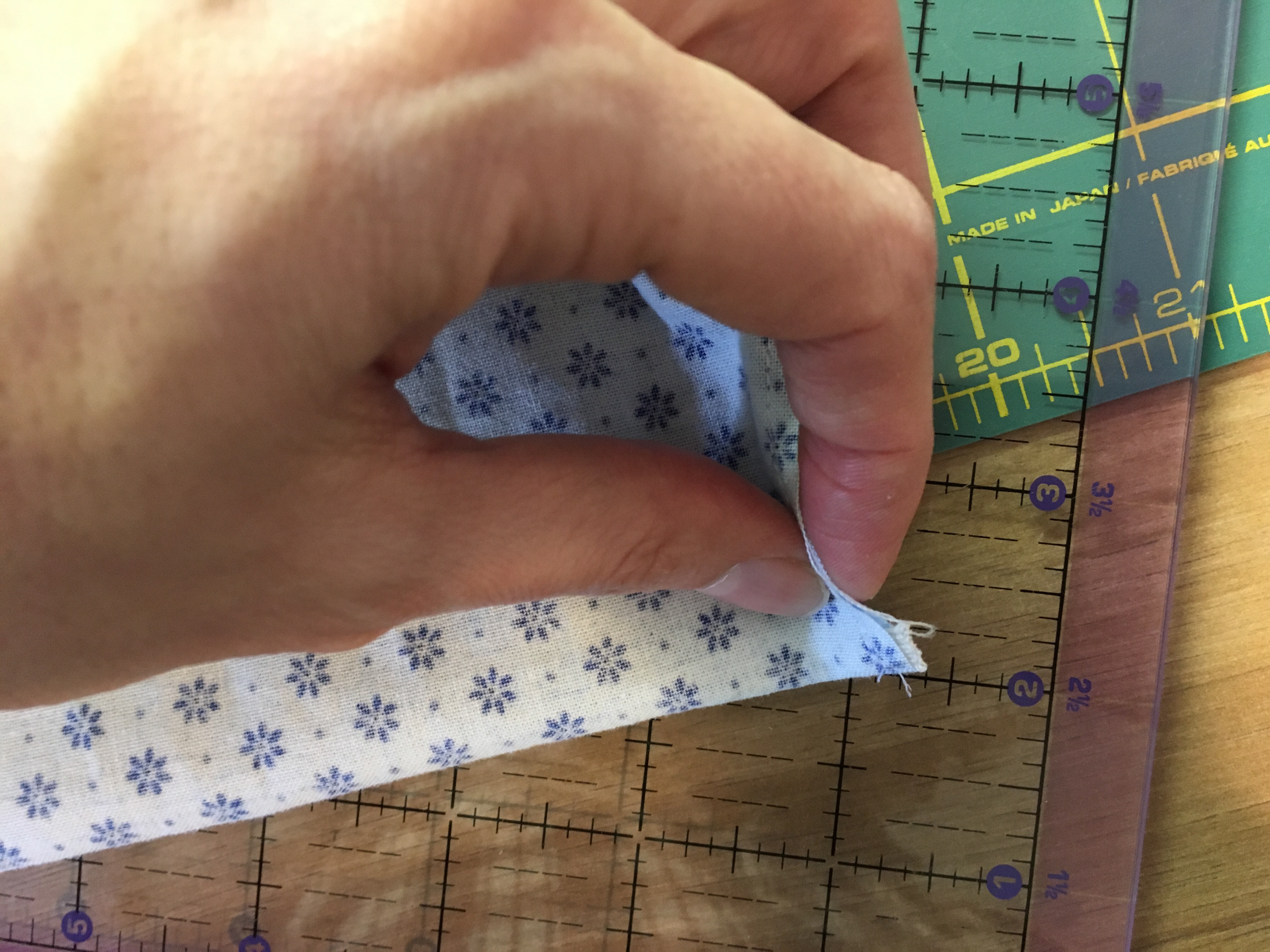 For version 3, you will sew the main mask piece closed, pleat it, and add the nose wire channel first. You can cut two pieces of fabric, 2″ x 40″ (the width of my fabric) and make straps. Iron the strap piece in half long ways (so now it is 1″ wide).